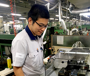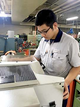 その中で旋盤という円筒部品を加工する機械を用いて加工作業をしており、手の感覚で行う汎用旋盤での作業、プログラムで連続加工が可能な自動旋盤での作業を使い分け、ミクロン単位で要求される品物等の製作に取り組んでいます。