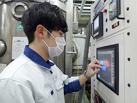 所属している表面処理課はケースやベゼルといった時計部品から装飾品や医療器具など多種多様な製品の上に、お客様の要望に合わせた薄膜を成膜する部署です。私は成膜装置の技術的(保全、トラブル等)対応を主に従事しています。その成膜方法はシチズン独自の技術を駆使しており大変複雑なため、今まで学んできた化学に加え、物理や機電系など幅広い知識を基に最適な解決策を探さなくてはならなく、そのトラブル対応を一人で一から完璧にこなすまで数年はかかるといわれています。まだまだ険しい道のりですが、一日でも早く独り立ちできるよう努力していきたいです。